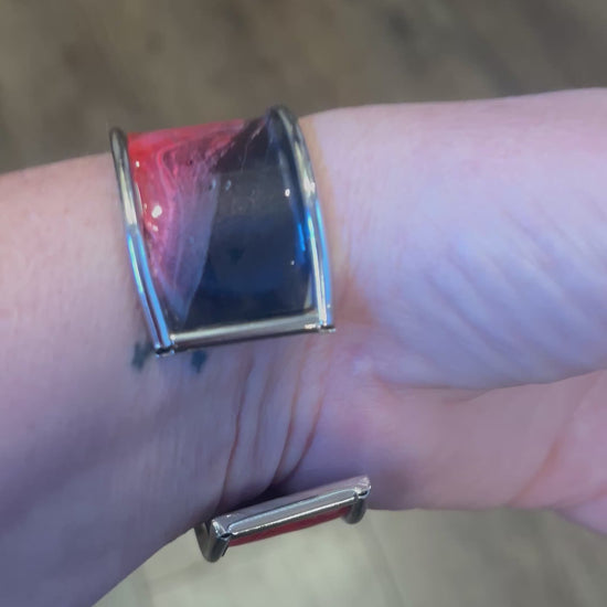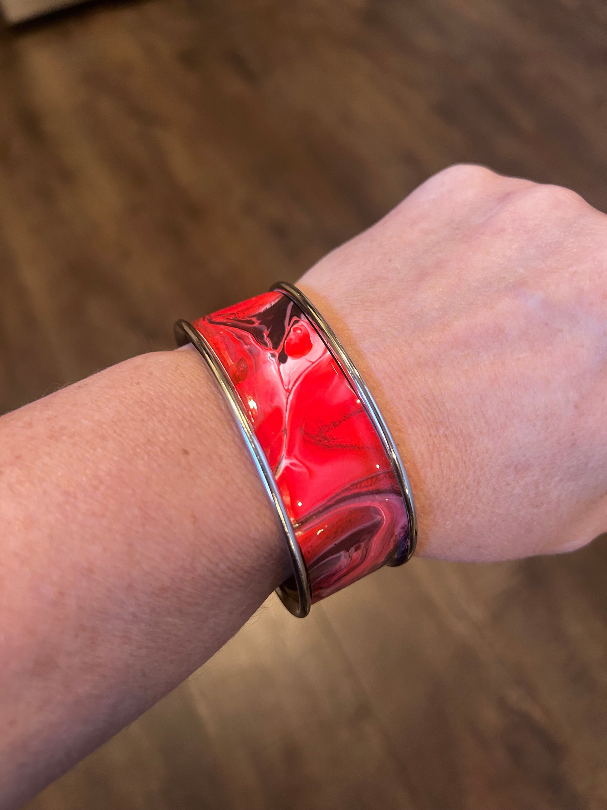 One-of-a-Kind Fluid Art Cuff Bracelet – 1” Wide Black and Red design