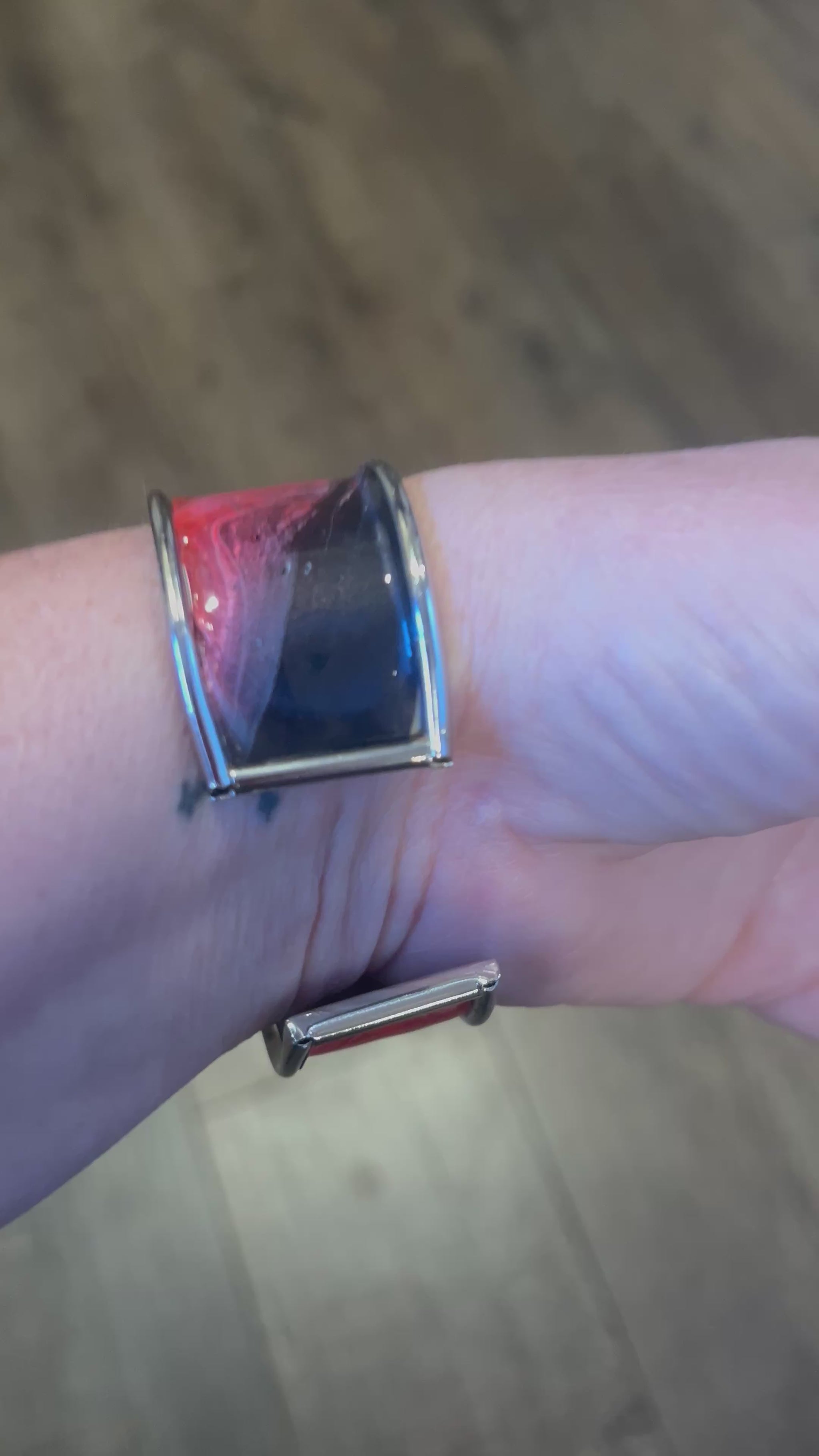 Elevate your everyday style with a bracelet that’s truly one of a kind. This handcrafted fluid-art cuff brings a bold pop of color and personality to any outfit—no two pieces are ever the same, making yours as unique as you are.